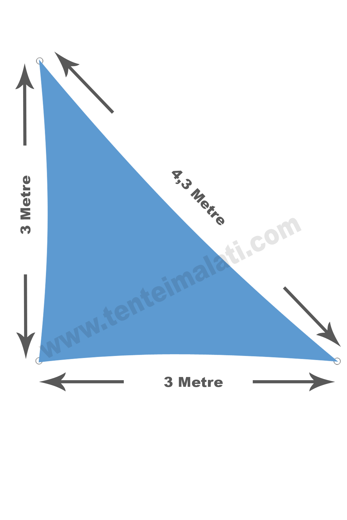 Yelken Tente – Su Geçirmez Üçgen Gölgelik Mavi Oxford Kumaş 3x3x4 Metre